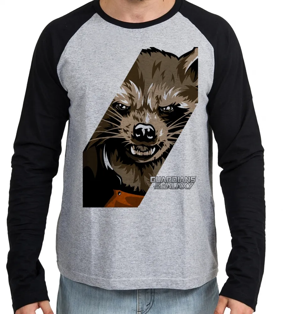 Camiseta manga longa Infantil ou Adulto Guardiões da Galáxia Rocket