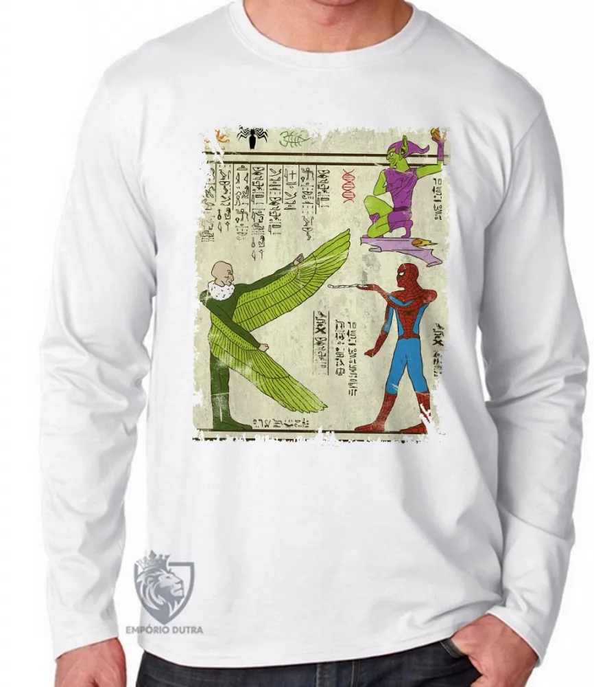 Camiseta manga longa Infantil ou Adulto hieróglifos homem aranha