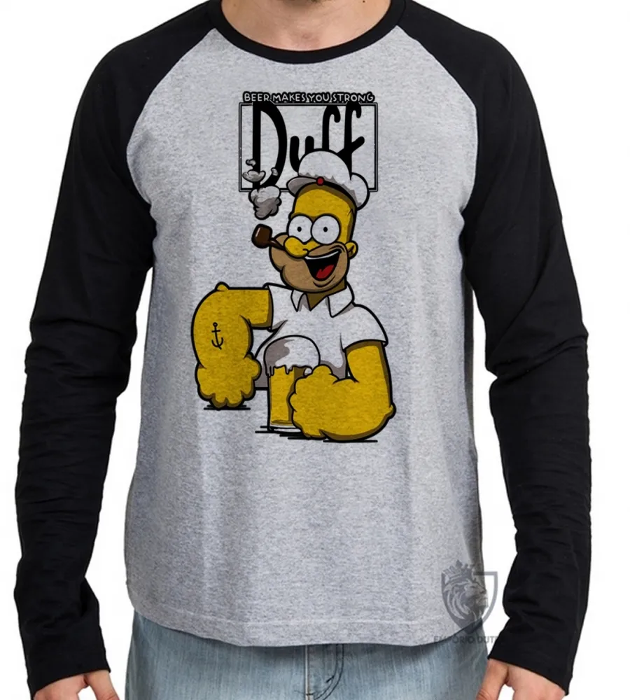Camiseta manga longa Infantil ou Adulto Homer simpsons popeye duff cerveja