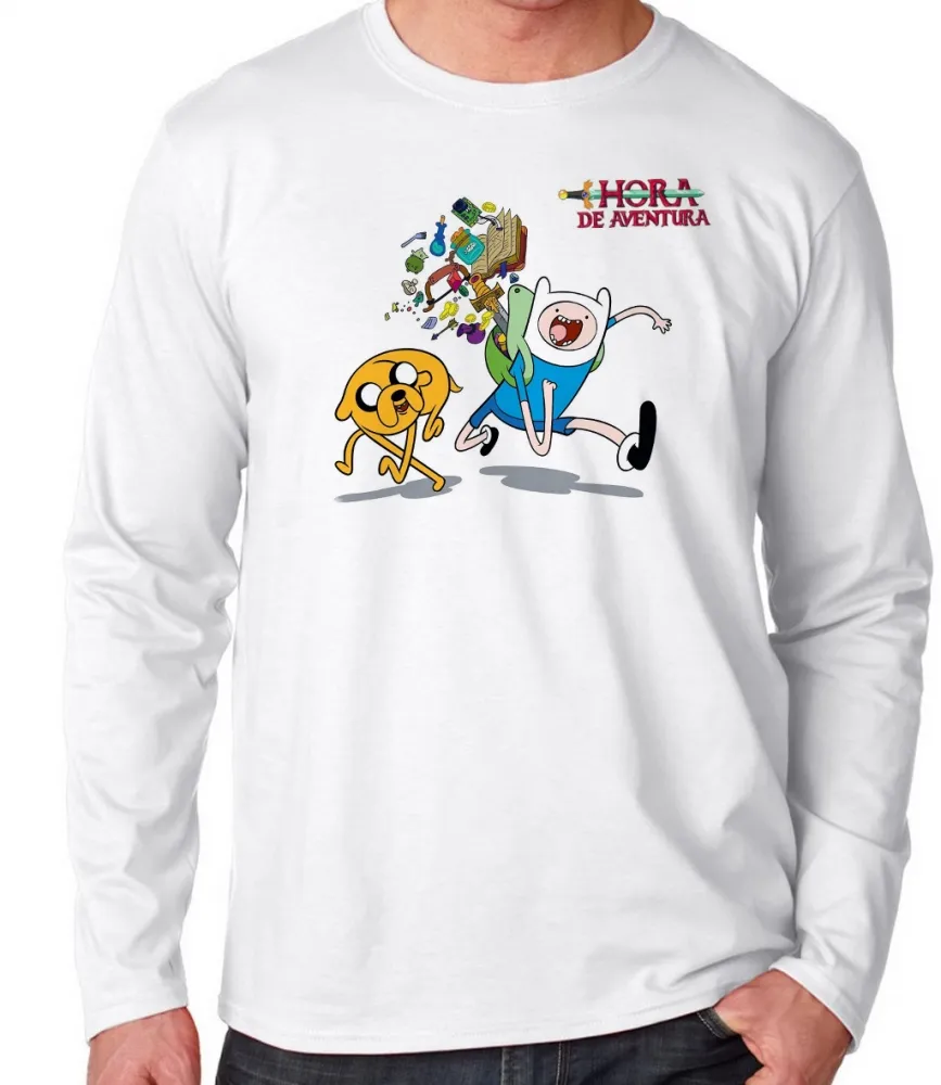 Camiseta manga longa Infantil ou Adulto hora de aventura adventure time