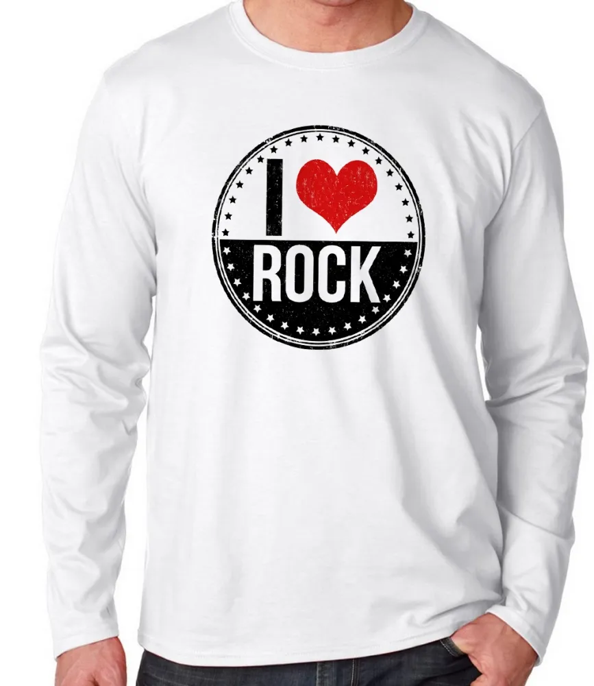 Camiseta manga longa Infantil ou Adulto I love rock redondo Imagem