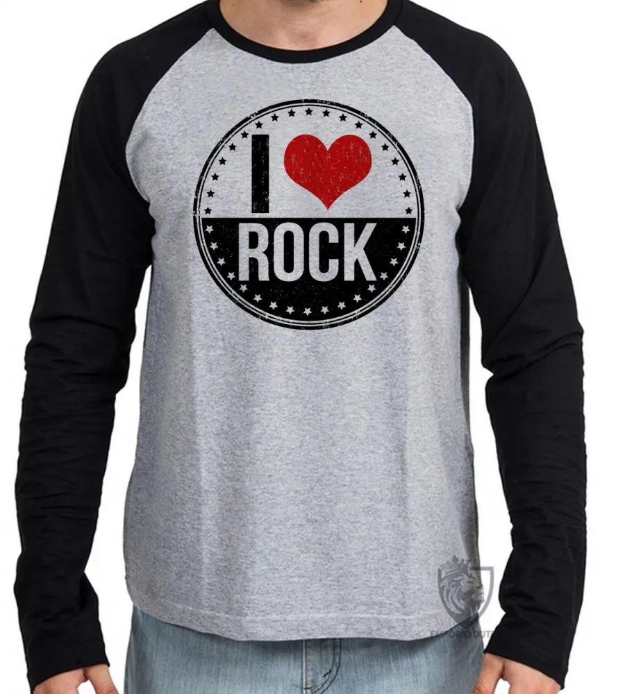 Camiseta manga longa Infantil ou Adulto I love rock redondo