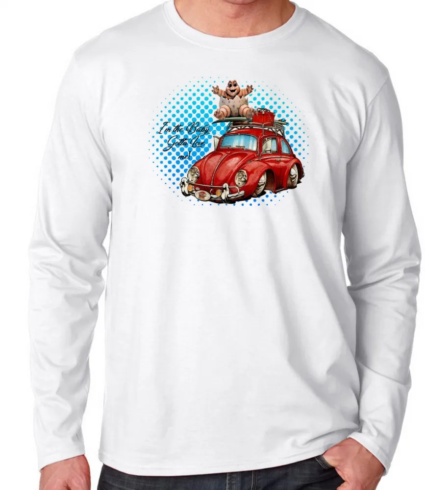 Camiseta manga longa Infantil ou Adulto Im baby dinossauro love red fusca
