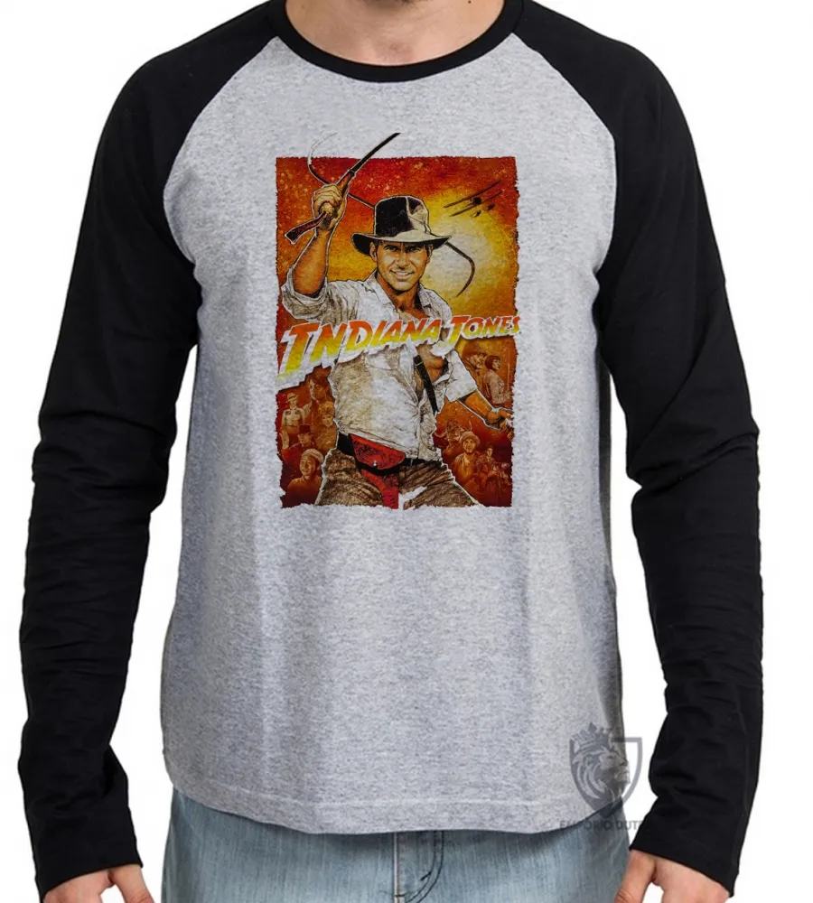 Camiseta manga longa Infantil ou Adulto Indiana Jones chicote