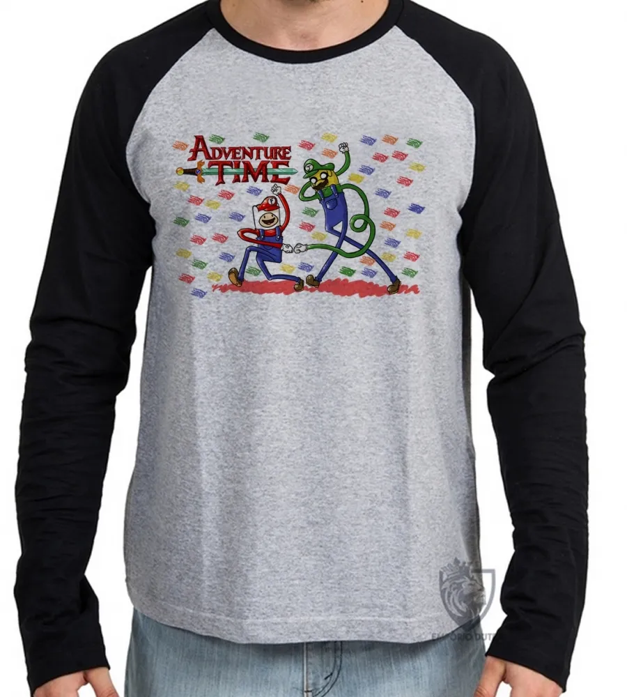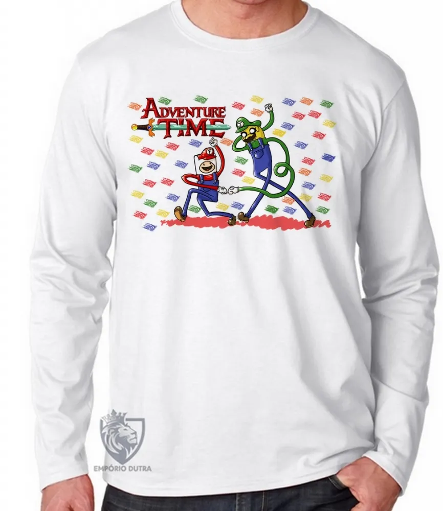 Camiseta manga longa Infantil ou Adulto Jake Finn Mario Luigi