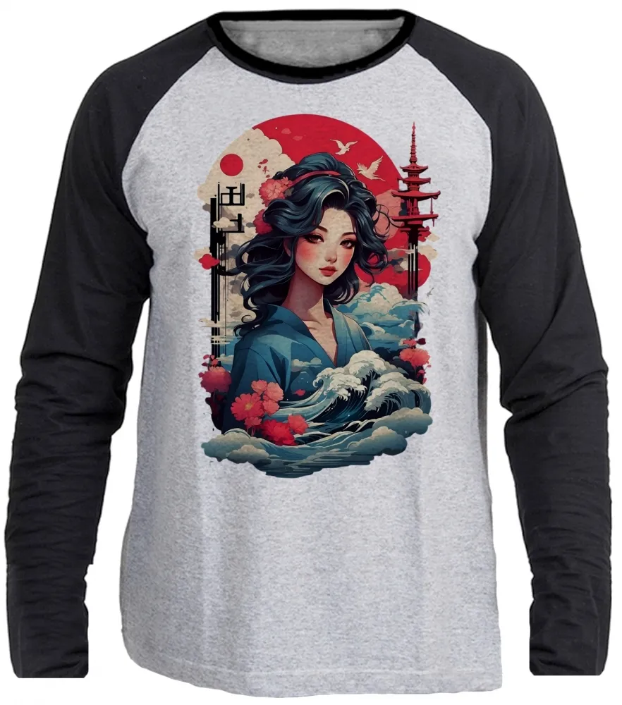 Camiseta manga longa Infantil ou Adulto Japonesa Japão gueixa mulher artista
