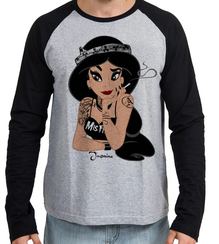 Camiseta manga longa Infantil ou Adulto Jasmine aladin fumando
