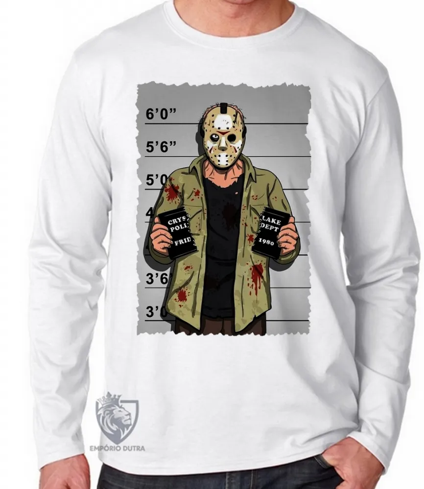 Camiseta manga longa Infantil ou Adulto Jason Voorhees vilão terror filme
