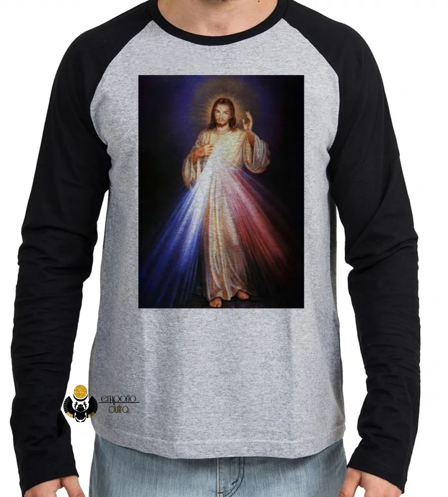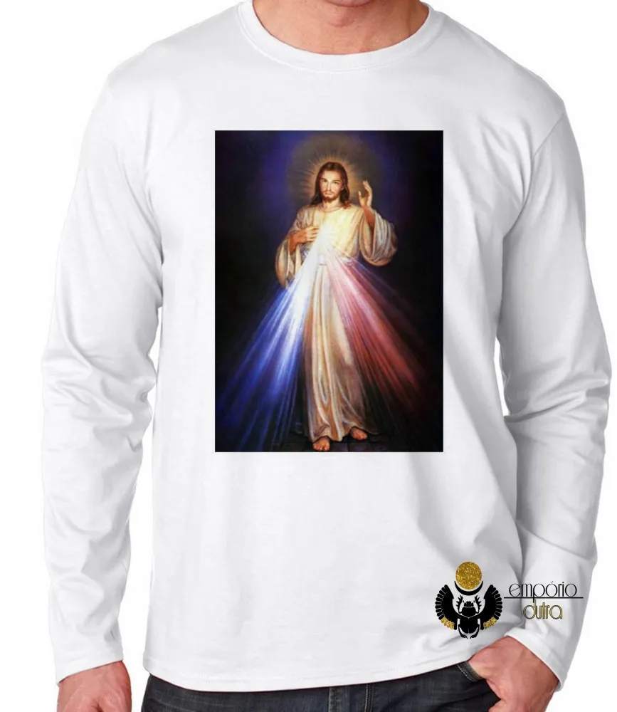 Camiseta manga longa Infantil ou Adulto Jesus Cristo Sagrado coração DEUS