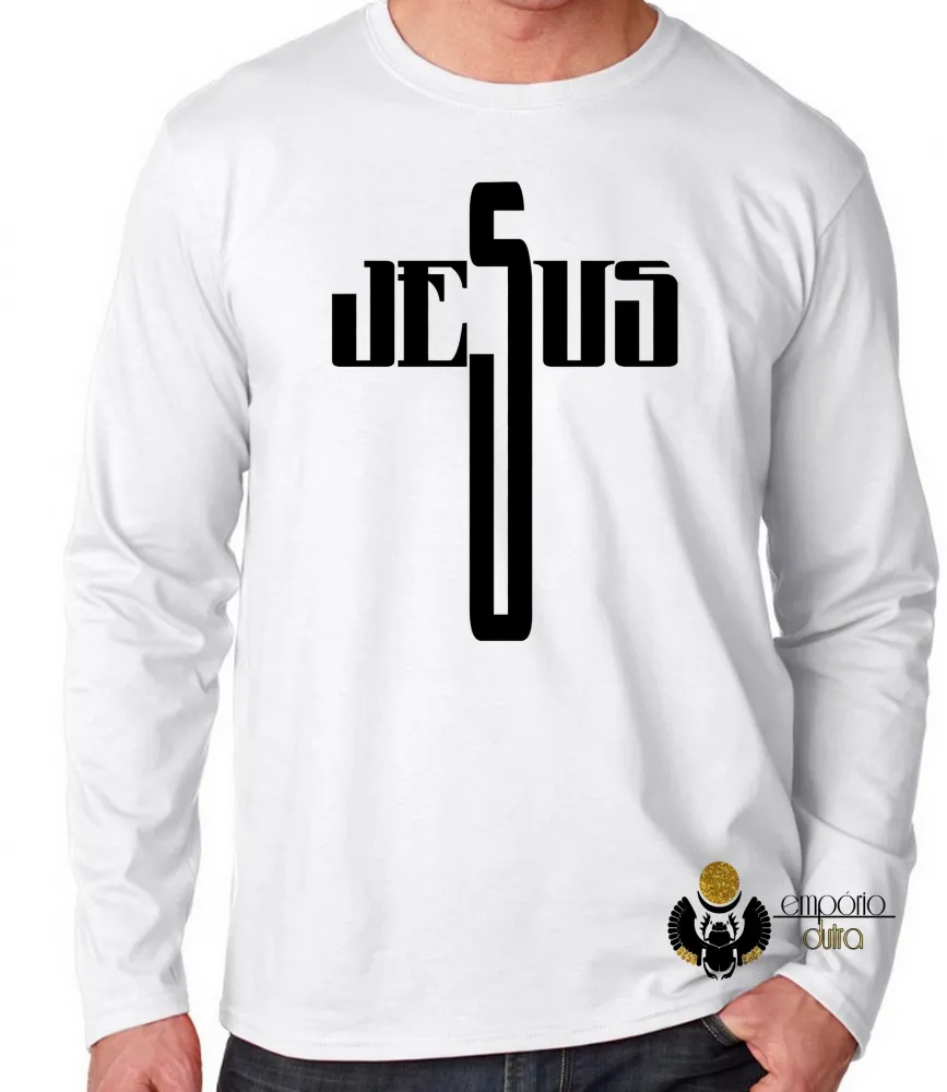 Camiseta manga longa Infantil ou Adulto Jesus DEUS Cristo crucifixo