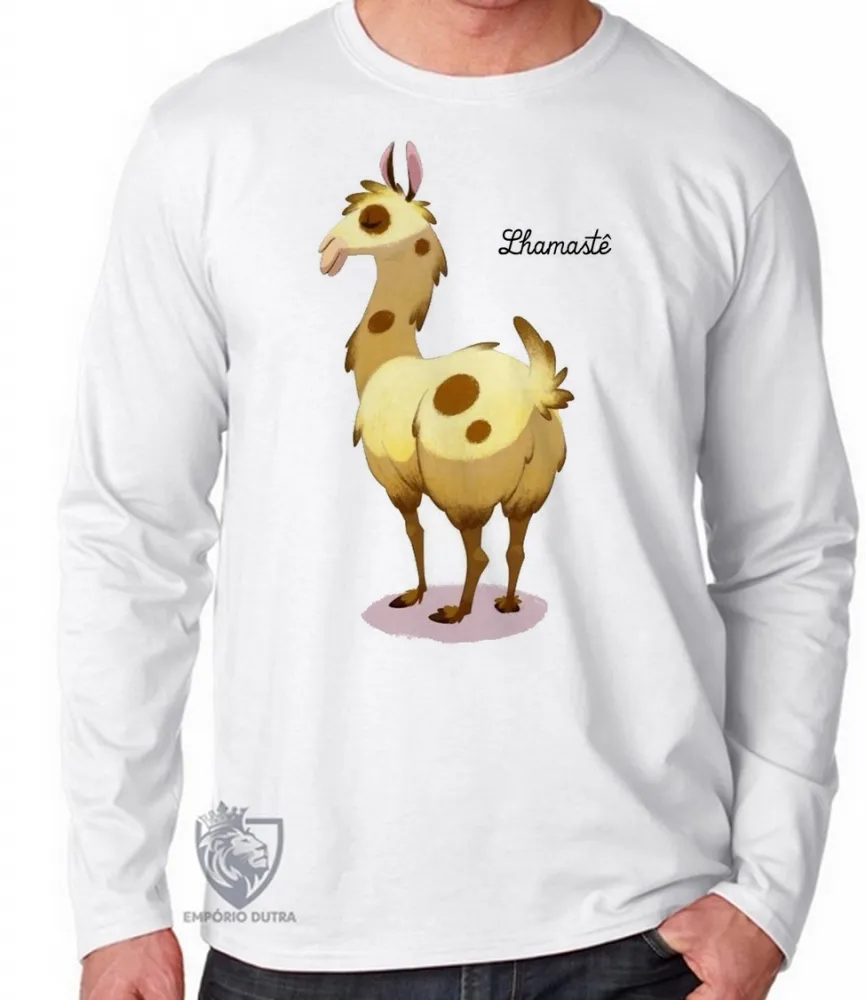 Camiseta manga longa Infantil ou Adulto Lhamastê lhama animal america