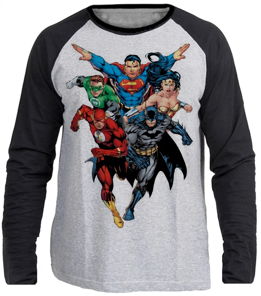 Camiseta manga longa Infantil ou Adulto liga da justiça superman maravilha