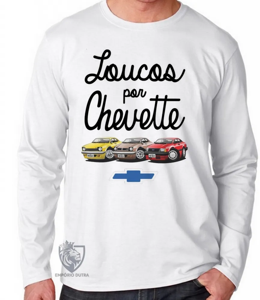 Camiseta manga longa Infantil ou Adulto Loucos por Chevette carro GM chevrolet