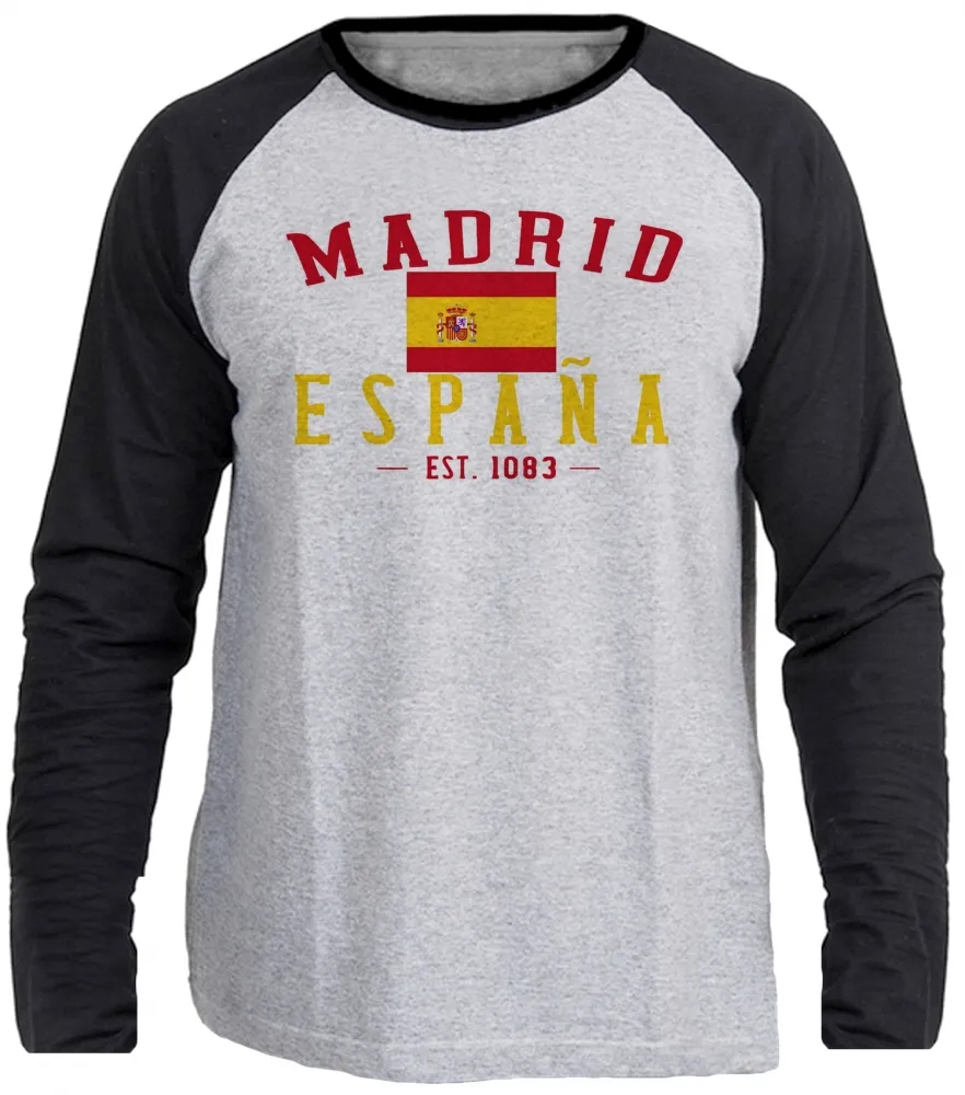 Camiseta manga longa Infantil ou Adulto Madri espanha europa