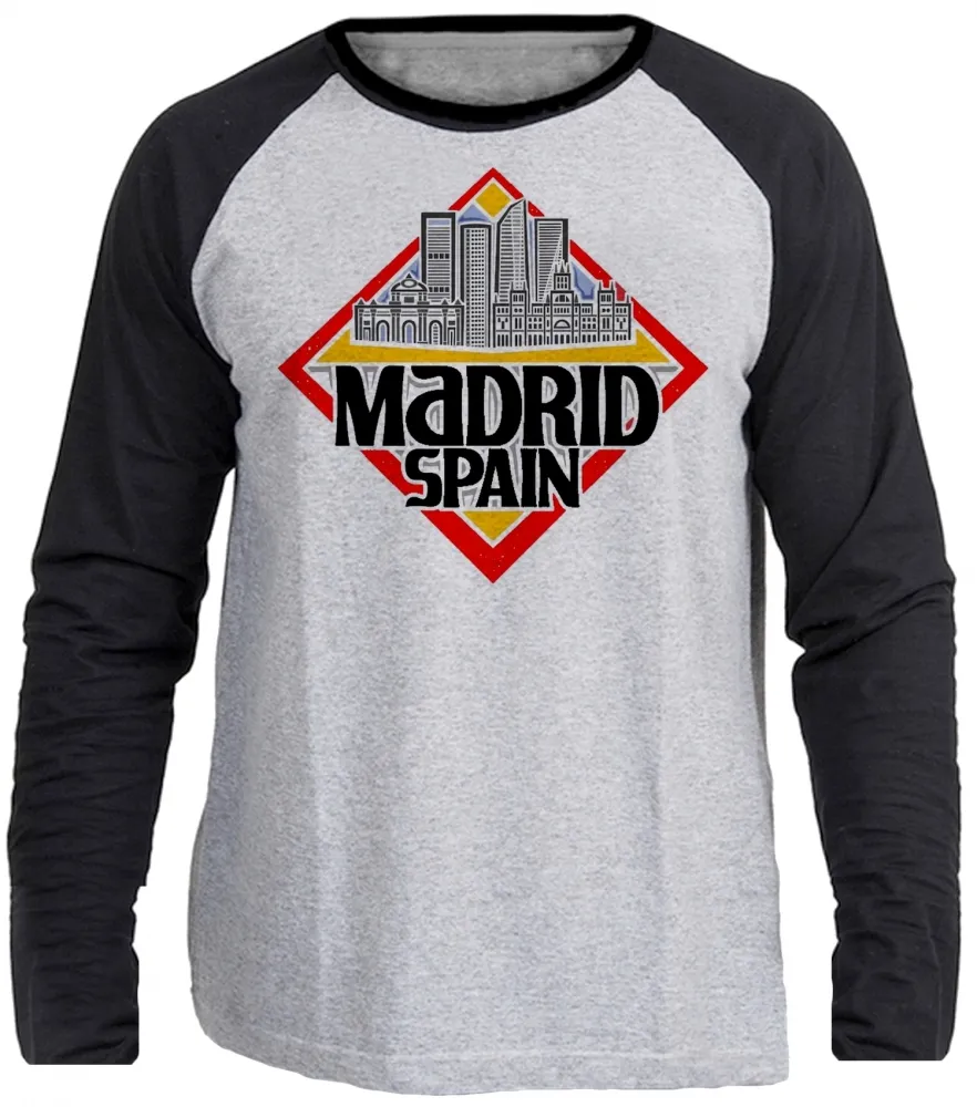 Camiseta manga longa Infantil ou Adulto Madri Espanha Lembrança