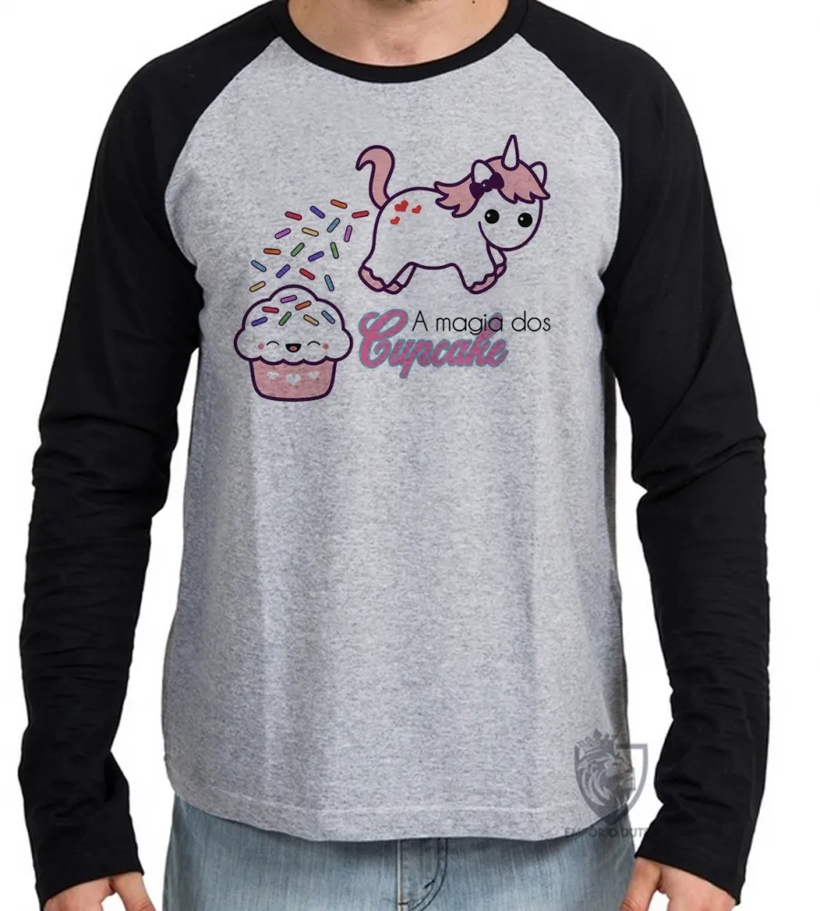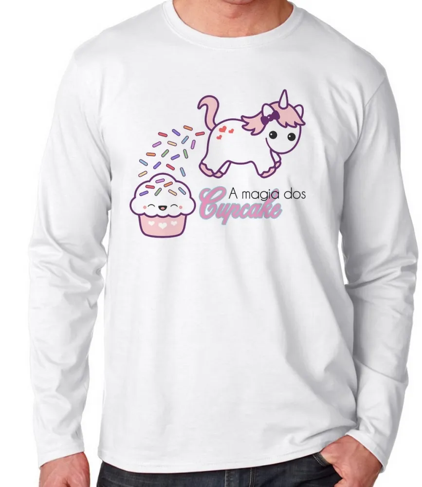Camiseta manga longa Infantil ou Adulto Magia dos Cupcake unicórnio