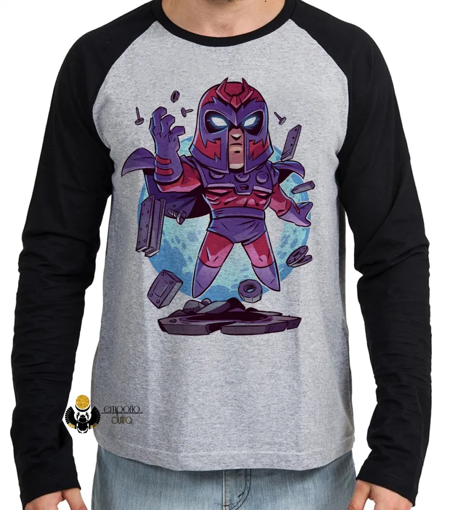Camiseta manga longa Infantil ou Adulto Magneto x men vilão marvel xavier
