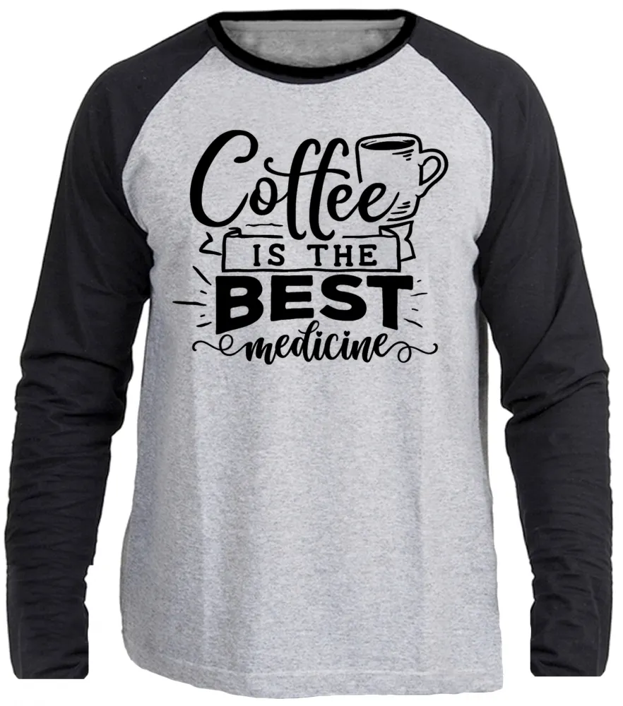 Camiseta manga longa Infantil ou Adulto Medicina Café melhor remédio