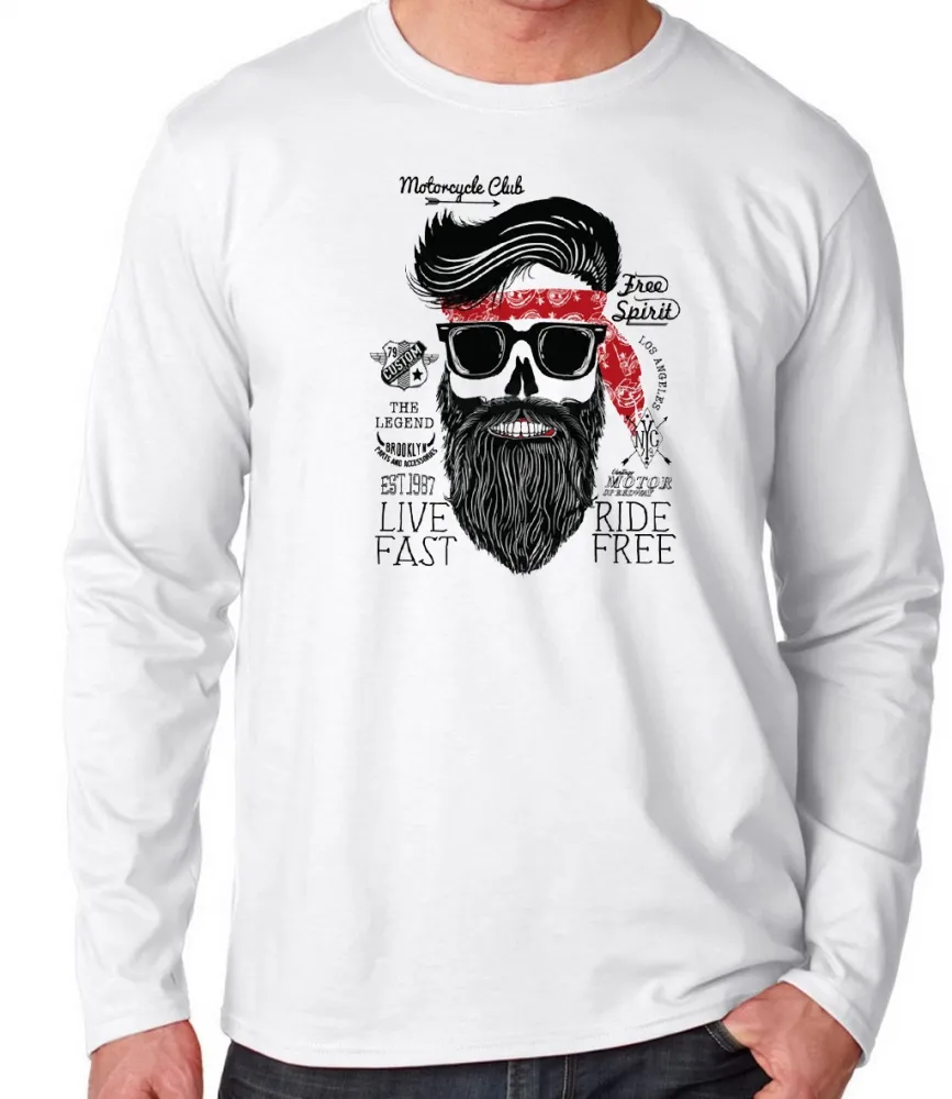 Camiseta manga longa Infantil ou Adulto Moto cycle Club Free spirit harley davidson