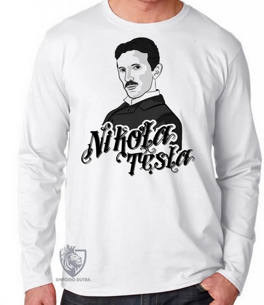 Camiseta manga longa Infantil ou Adulto nikola tesla genio eletrica