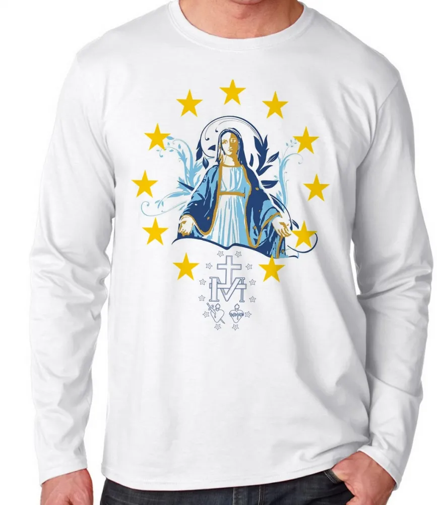 Camiseta manga longa Infantil ou Adulto Nossa Senhora das Graças santa JESUS Mãe