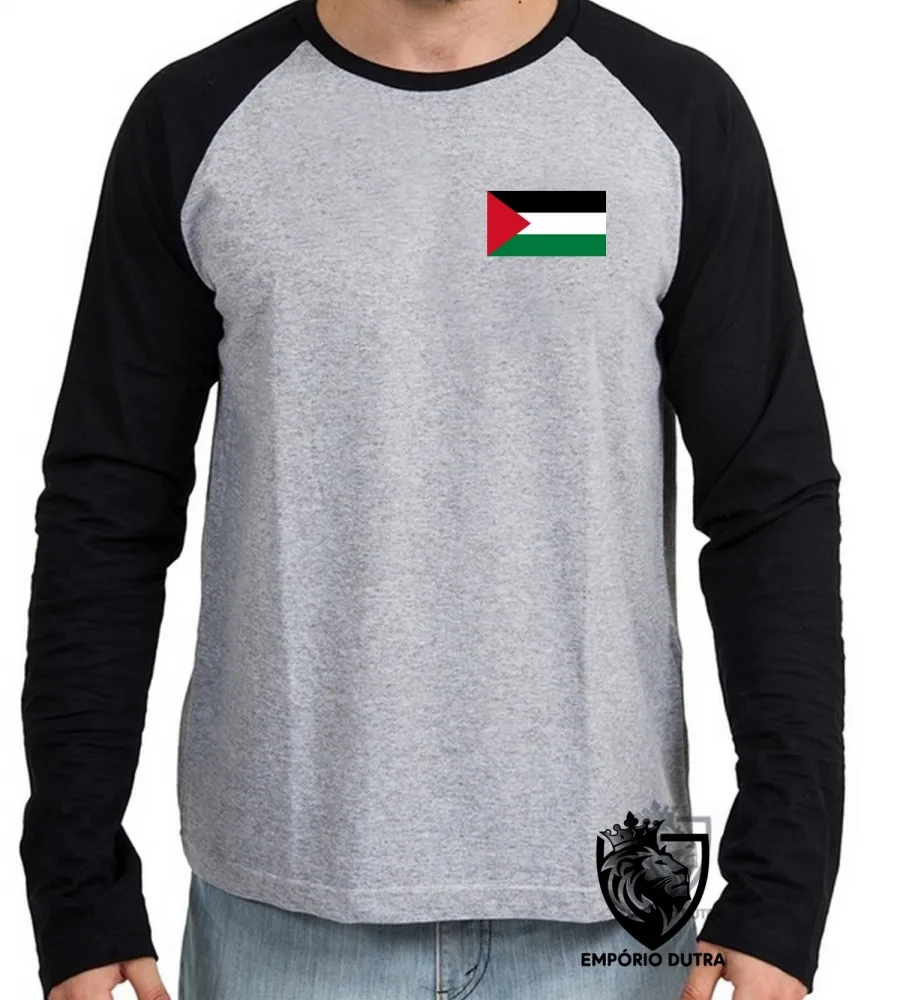 Camiseta manga longa Infantil ou Adulto Palestina Imagem
