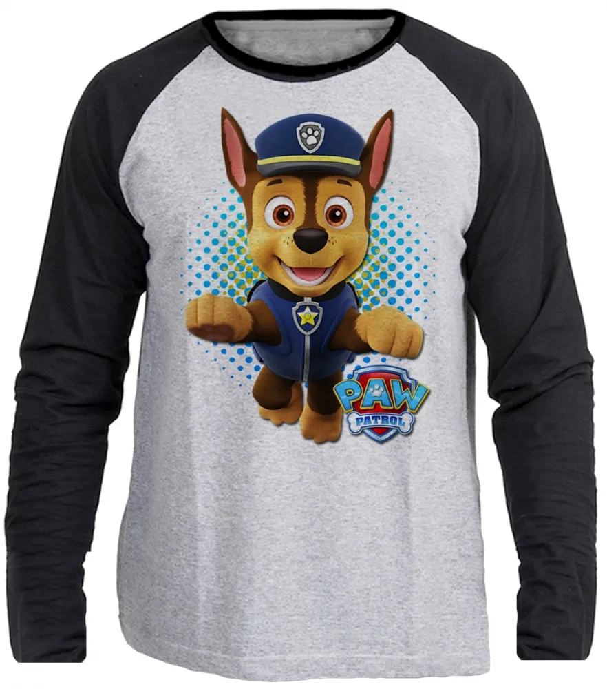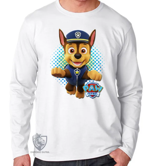 Camiseta manga longa Infantil ou Adulto Patrulha Canina Chase