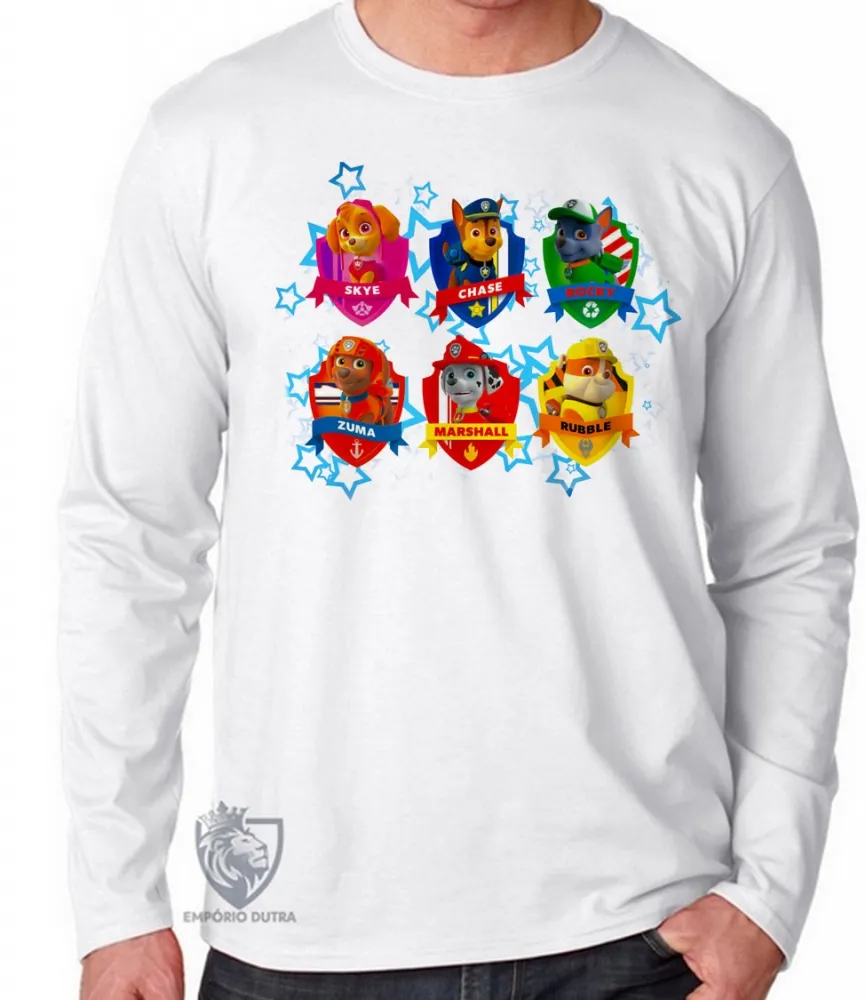 Camiseta manga longa Infantil ou Adulto Patrulha Canina nomes