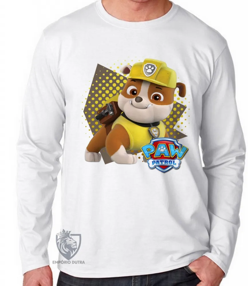 Camiseta manga longa Infantil ou Adulto Patrulha Canina Ruble