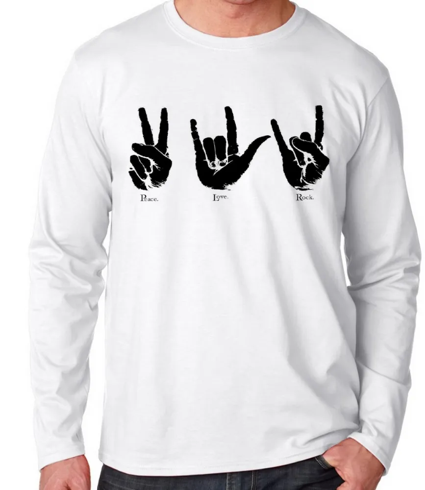 Camiseta manga longa Infantil ou Adulto Paz love rock libras