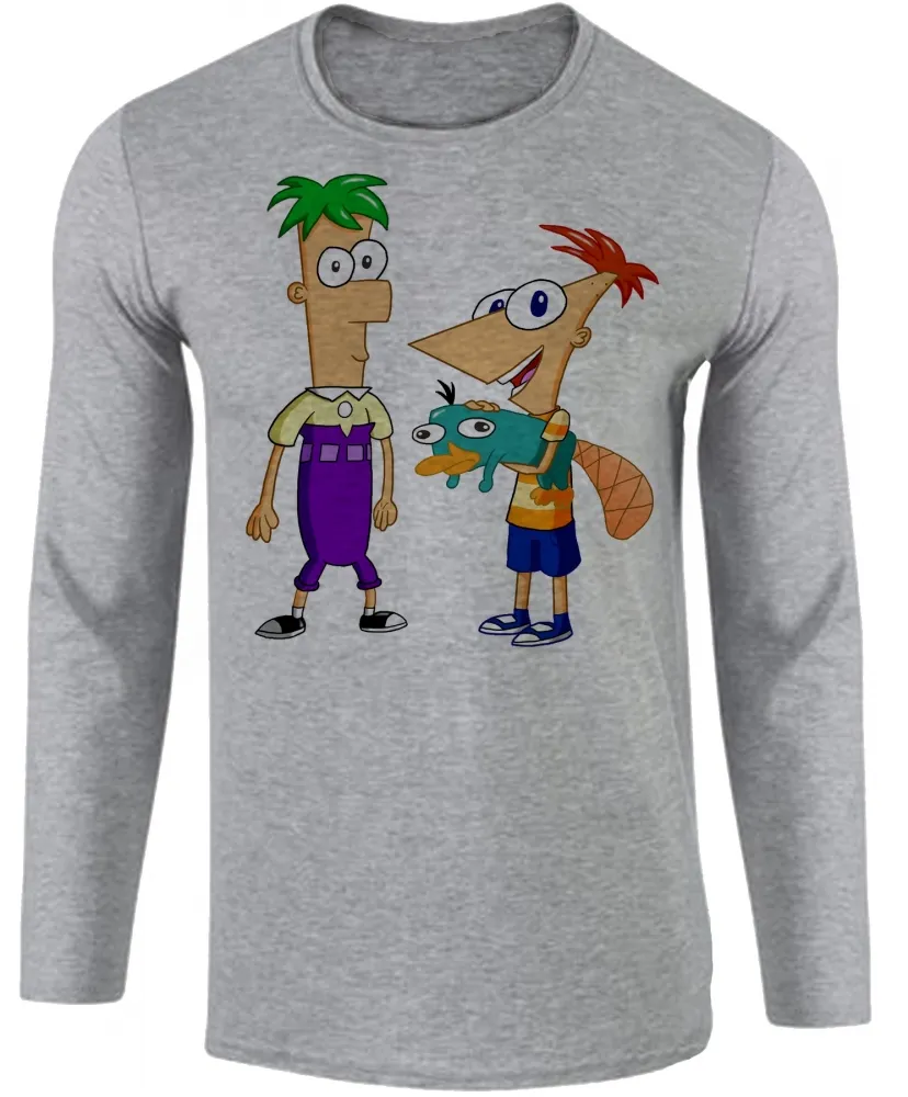 Camiseta manga longa Infantil ou Adulto Phineas e Feb desenho antigo Imagem