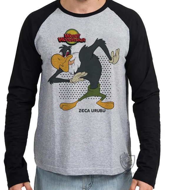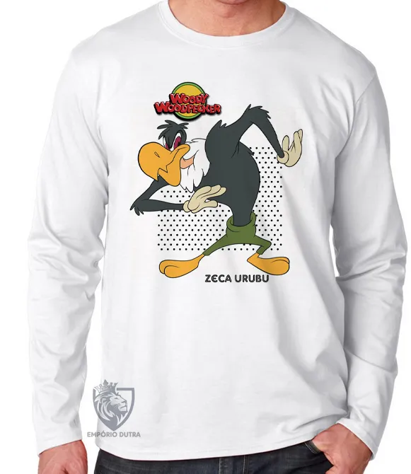 Camiseta manga longa Infantil ou Adulto Pica pau Zeca Urubu