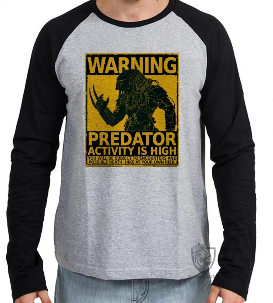 Camiseta manga longa Infantil ou Adulto predador alien warning perigo cartaz