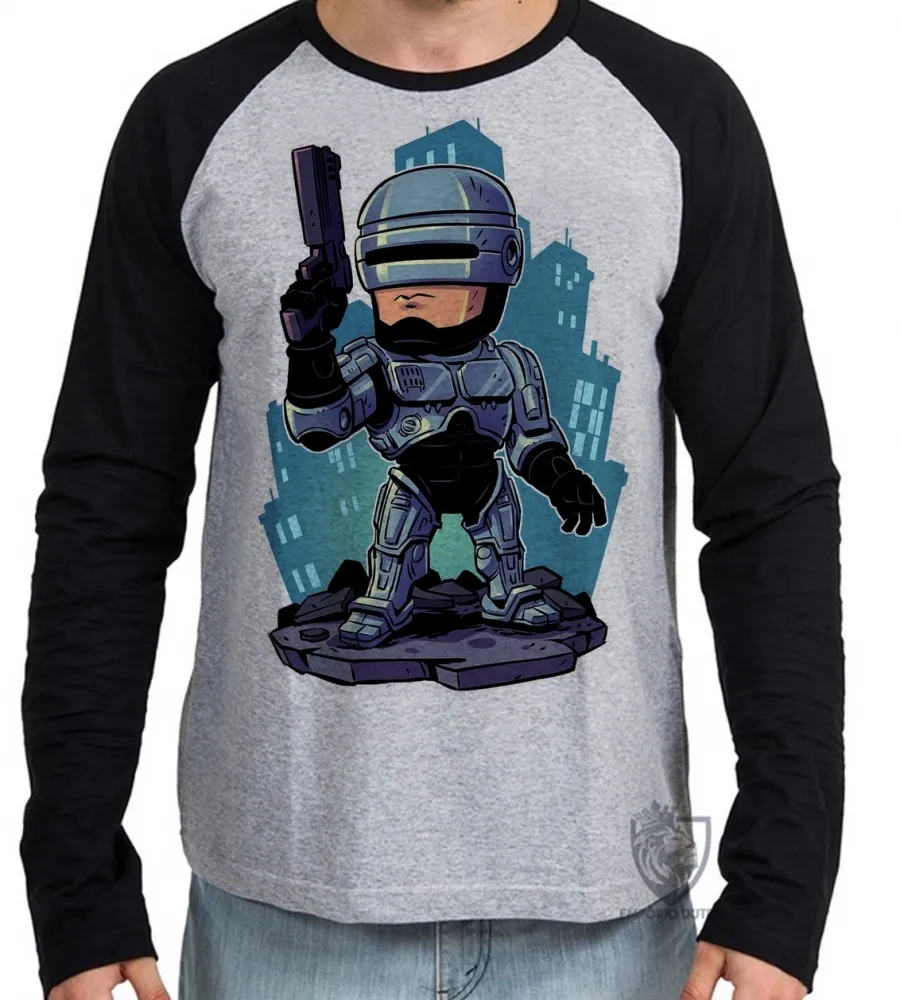 Camiseta manga longa Infantil ou Adulto ROBOCOP robo policial futuro