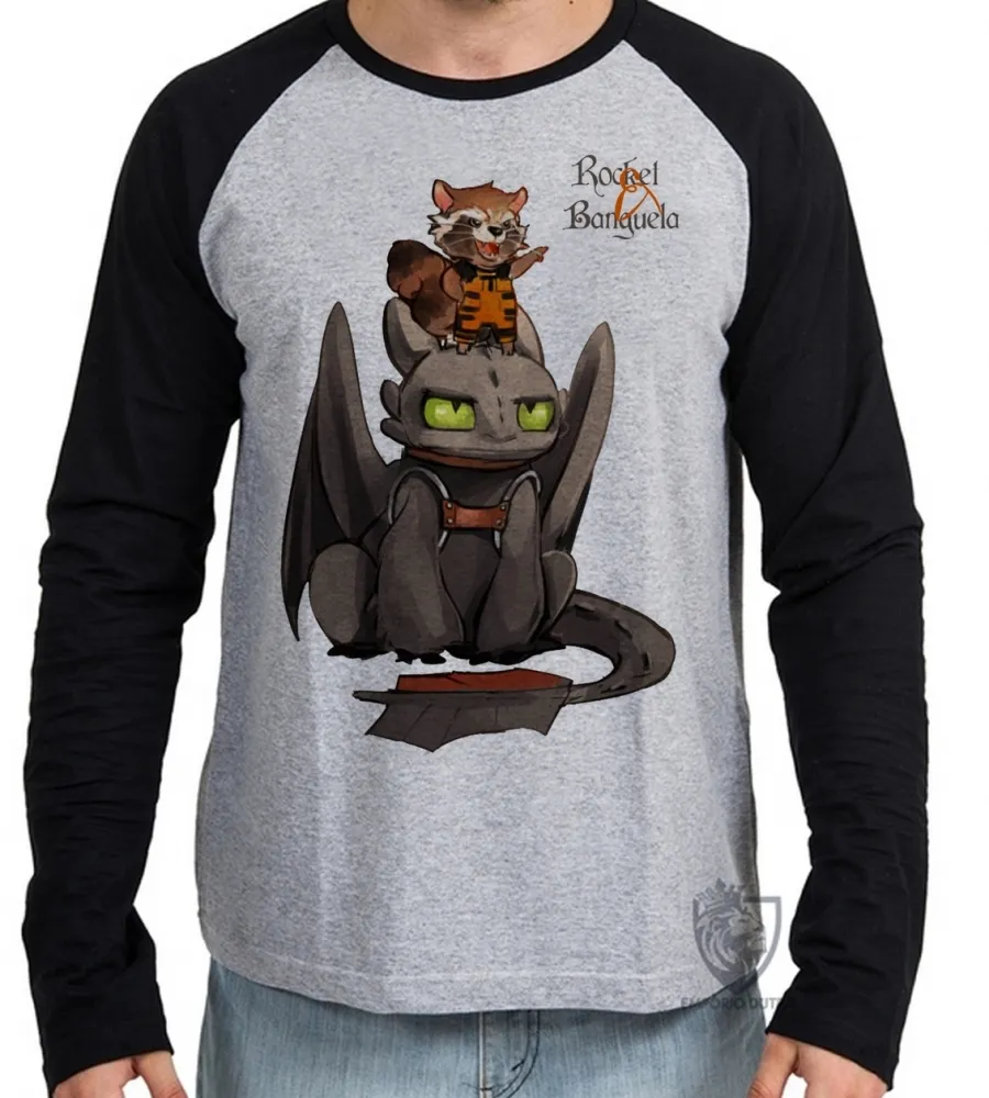 Camiseta manga longa Infantil ou Adulto Rocket guardiões galaxia Banguela dragão