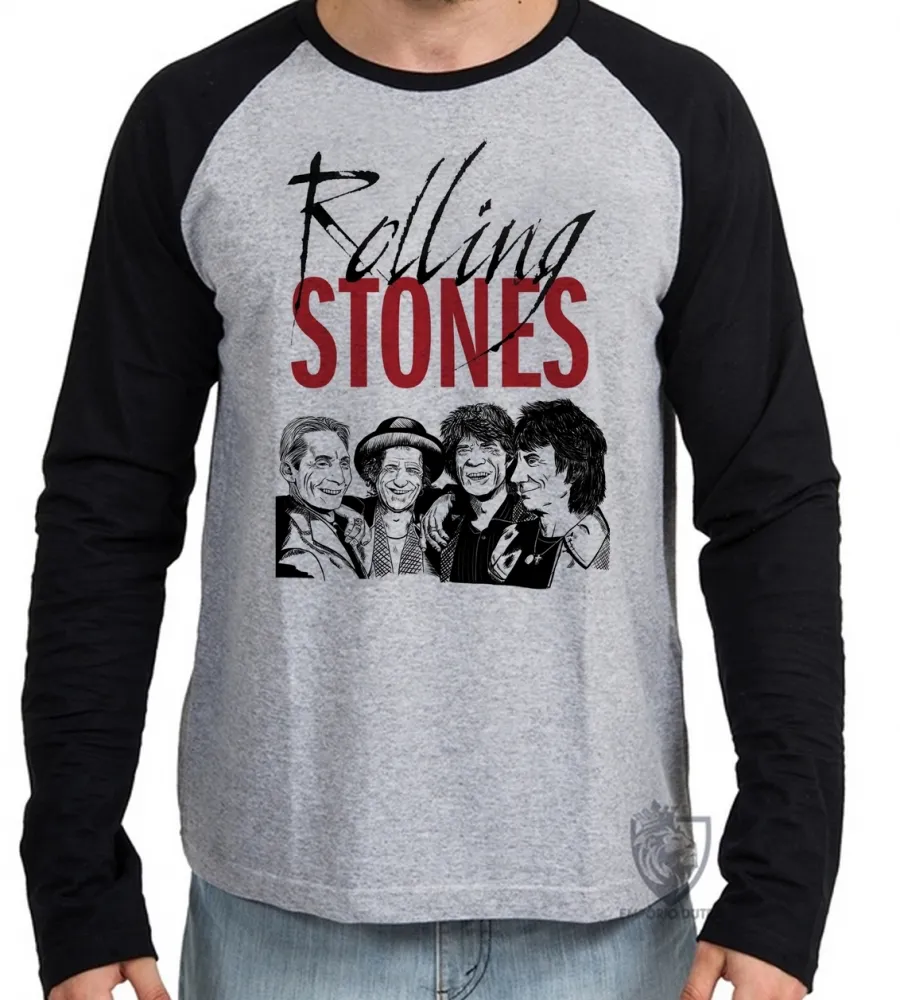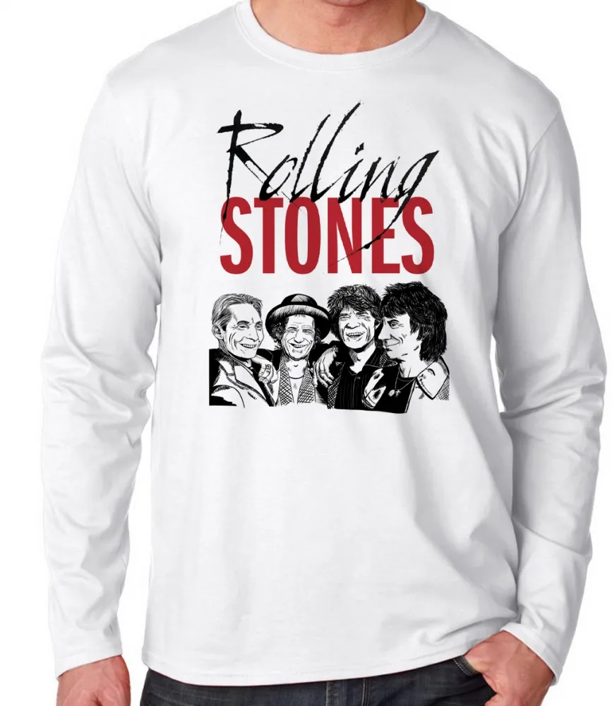 Camiseta manga longa Infantil ou Adulto rolling stones banda rock mick jagger