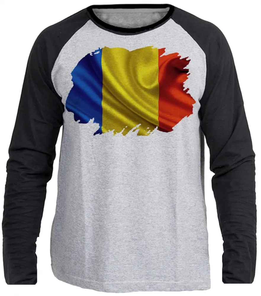 Camiseta manga longa Infantil ou Adulto Romênia Bandeira