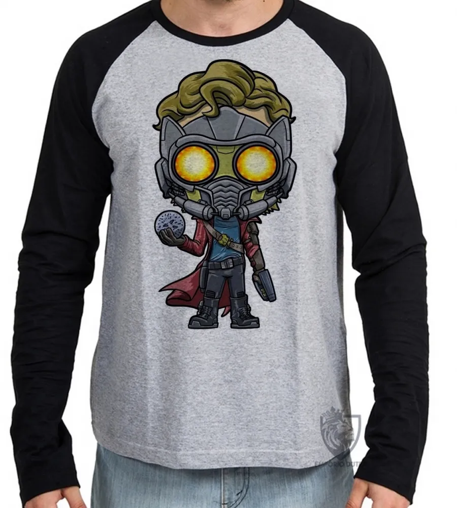 Camiseta manga longa Infantil ou Adulto senhor das estrelas peter quil marvel