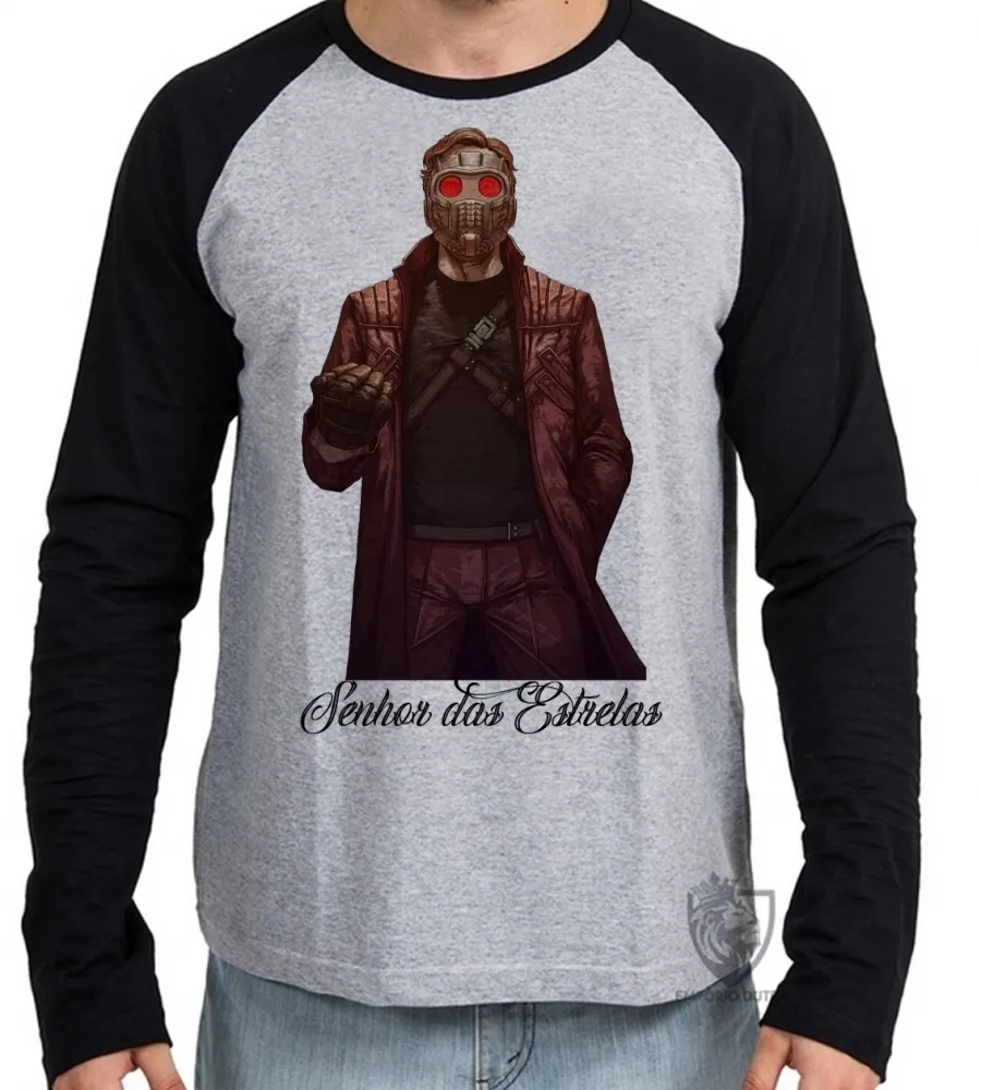 Camiseta manga longa Infantil ou Adulto Senhor das Estrelas peter quill hero marvel