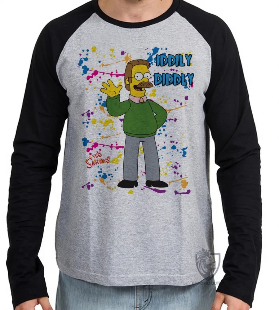 Camiseta manga longa Infantil ou Adulto simpsons flanders iddily diddly