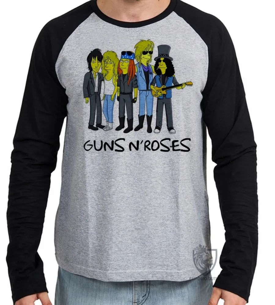 Camiseta manga longa Infantil ou Adulto simpsons guns in roses banda rock musica