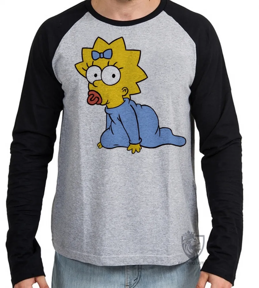 Camiseta manga longa Infantil ou Adulto Simpsons Maggie Bebê lisa margie homer