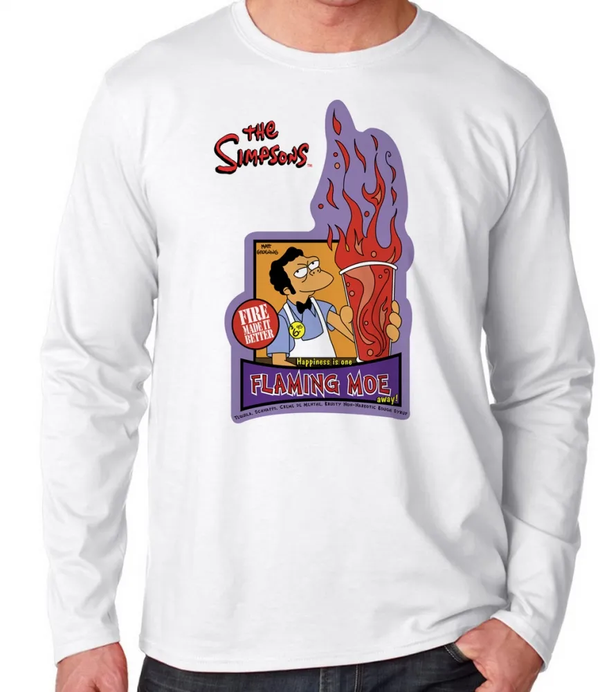 Camiseta manga longa Infantil ou Adulto simpsons moe bar cerveja homer fogo