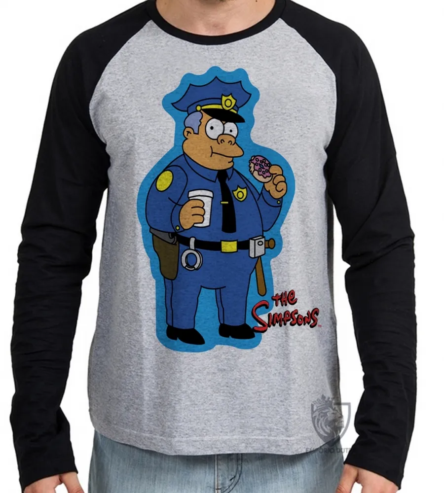 Camiseta manga longa Infantil ou Adulto simpsons policial donut rosquinha