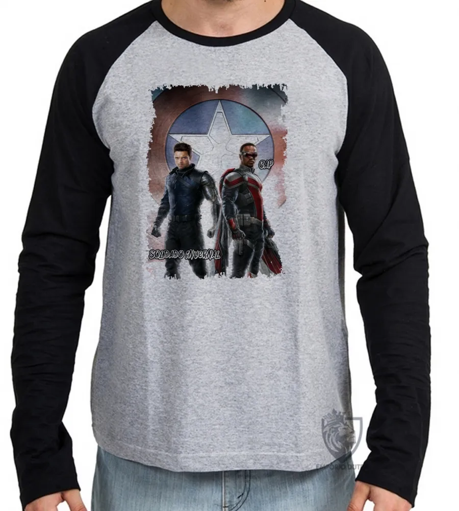 Camiseta manga longa Infantil ou Adulto Soldado Invernal Capitão Falcão