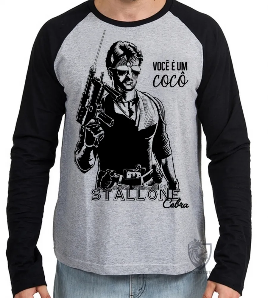 Camiseta manga longa Infantil ou Adulto Stallone Cobra você é um cocô