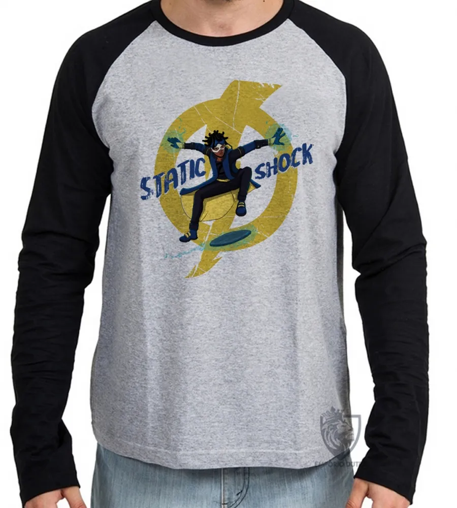 Camiseta manga longa Infantil ou Adulto super shock choque static desenho