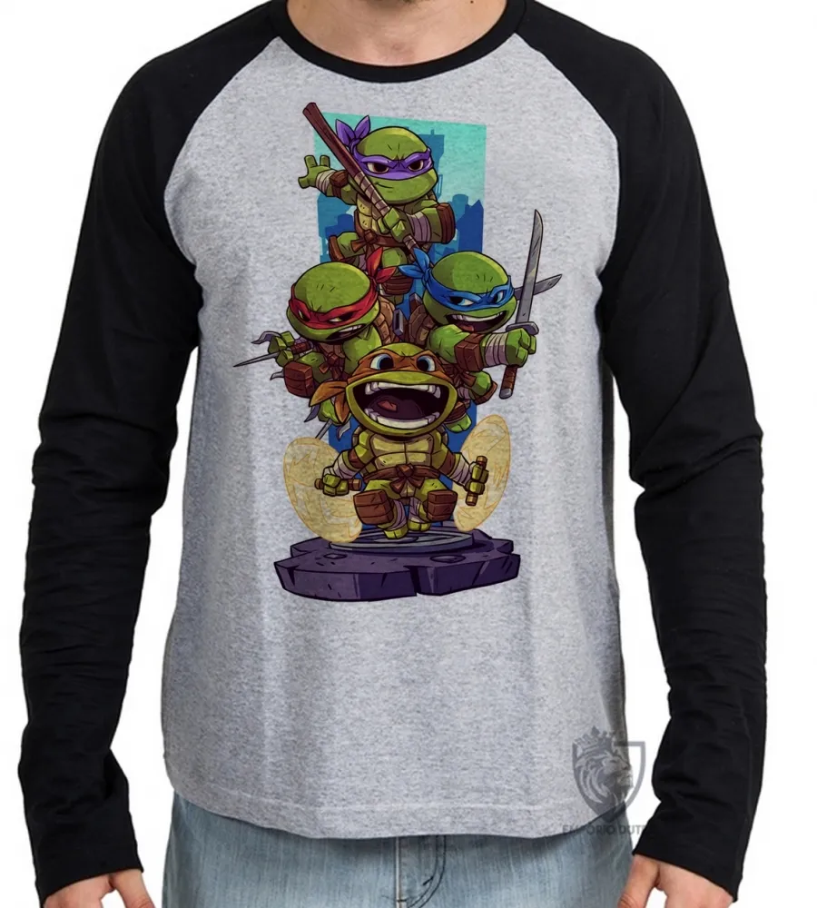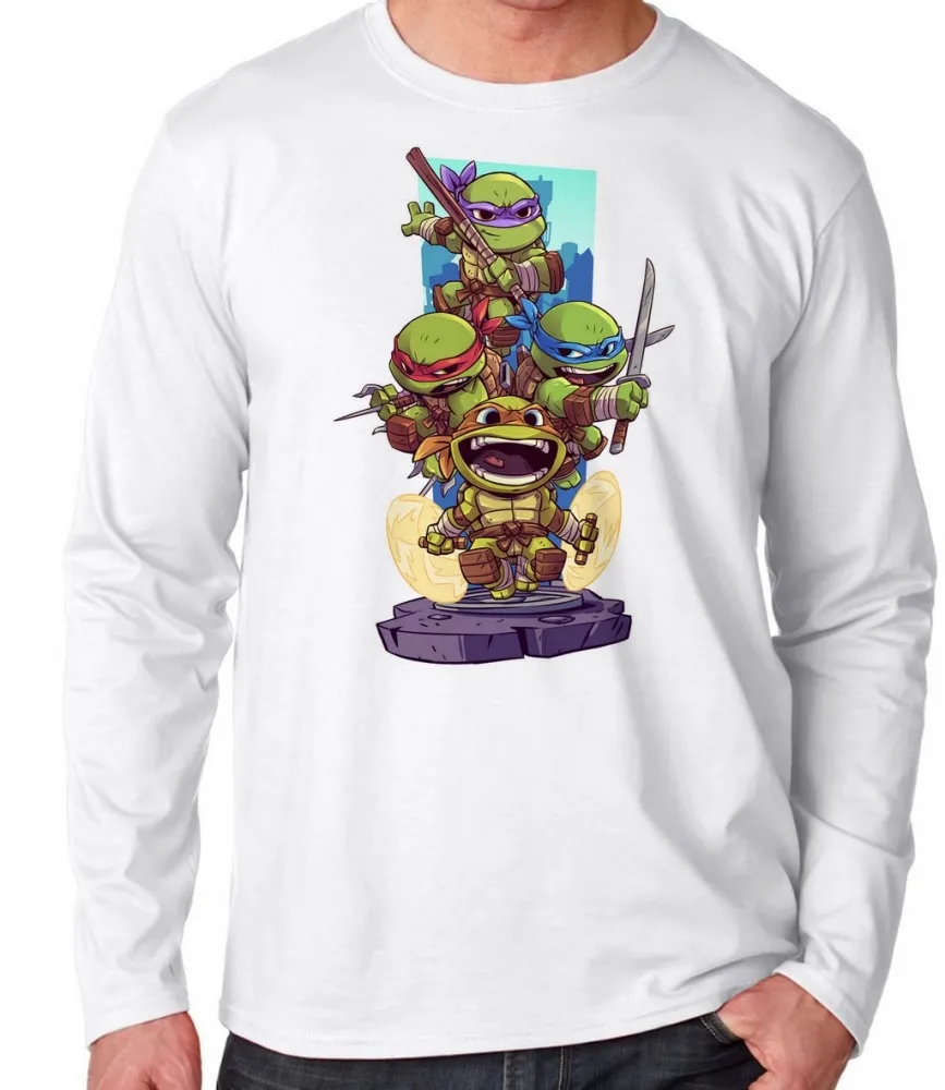 Camiseta manga longa Infantil ou Adulto tartaruga ninja