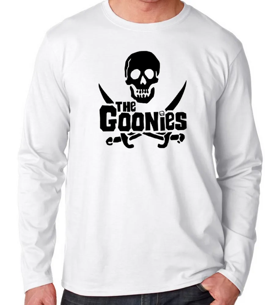 Camiseta manga longa Infantil ou Adulto The Goonies caveira filme piratas anos 80