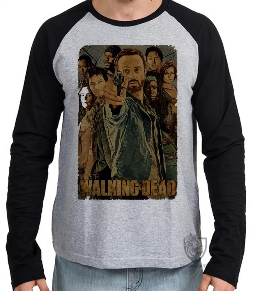 Camiseta manga longa Infantil ou Adulto The walking Dead arma apontando todos